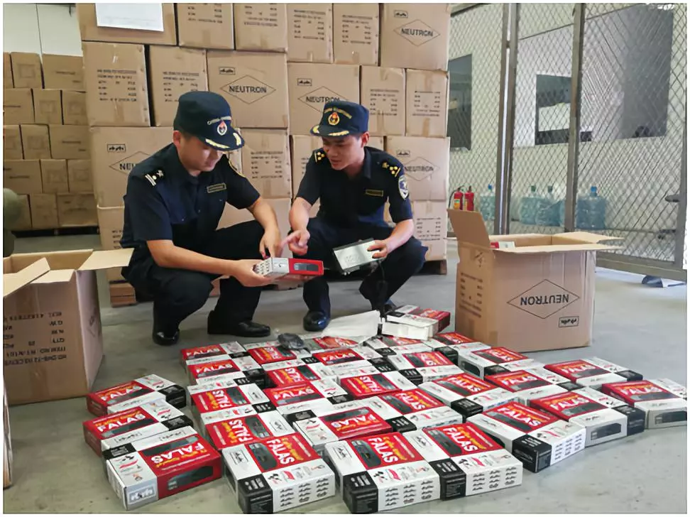 2018年10月17日,在深圳市煙草專賣局的統(tǒng)一指揮下,福田、羅湖等區(qū)局聯(lián)合公安部門展開抓捕行動(dòng),當(dāng)場(chǎng)查獲假私卷煙330萬(wàn)支,查扣涉案車輛4臺(tái),案值逾320萬(wàn)元,抓獲涉案嫌疑人5名。據(jù)了解,該案嫌疑人多次作案,嚴(yán)重?cái)_亂卷煙市場(chǎng)秩序,區(qū)局為此成立專案組,不分晝夜蹲點(diǎn)守候。經(jīng)過(guò)2個(gè)多月的跟蹤調(diào)查,一舉破獲這宗運(yùn)輸、倉(cāng)儲(chǔ)、銷售假私煙案件。案發(fā)現(xiàn)場(chǎng)查獲兩把手槍、三包子彈及部分管制刀具等器械,目前該案由公安機(jī)關(guān)作進(jìn)一步調(diào)查處理。該案是典型的涉黑涉煙案件。此案的告破,充分借助了中央“掃黑除惡”的東風(fēng),有力彰顯了煙草專賣執(zhí)法人員不懼危險(xiǎn)的精神,切實(shí)維護(hù)了國(guó)家利益和消費(fèi)者利益。