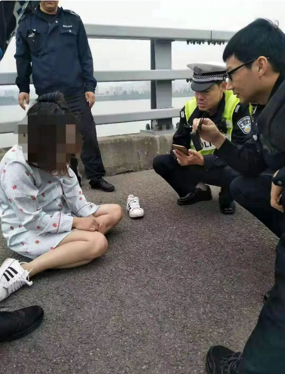 將女子從護(hù)欄上放下來后,