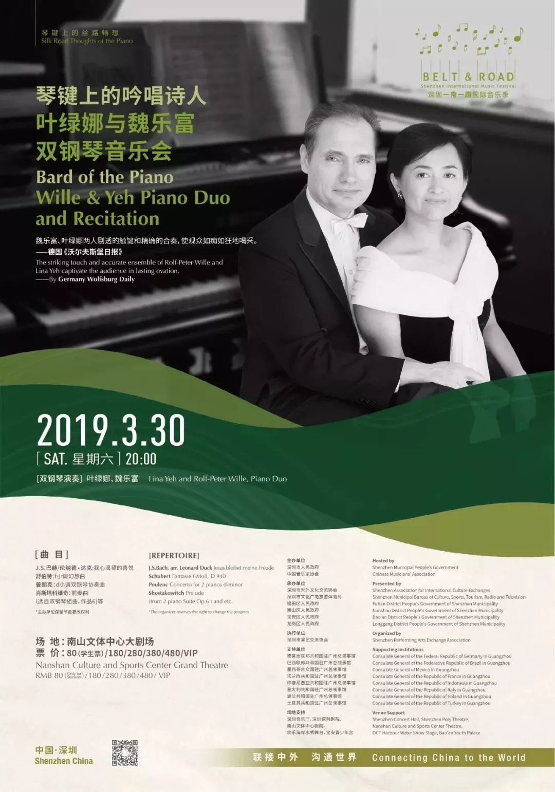 主體活動(dòng)星光燦爛,延展活動(dòng)眾星拱月,優(yōu)惠購(gòu)票、免費(fèi)招募、免費(fèi)參與靜等你來(lái)!參與方式可關(guān)注“深圳一帶一路音樂(lè)季”微信公共號(hào)。