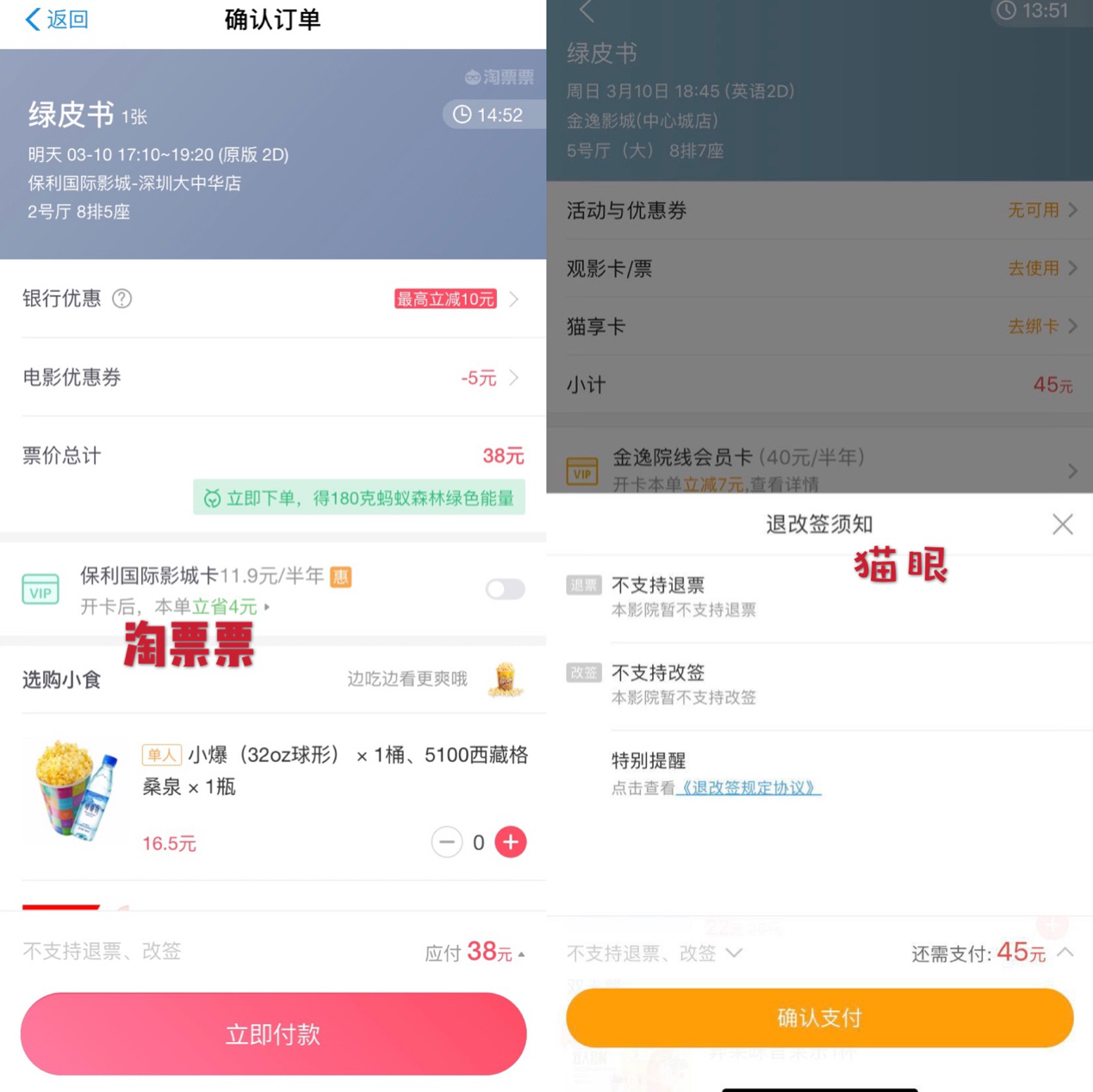 記者日前以熱映的電影《綠皮書》為例,在手機上查看福田各大影院“退改簽”情況。據(jù)統(tǒng)計,貓眼APP上當(dāng)天的同一時段也有22家電影院可以購票,其中有7家電影院不支持“退改簽”,4家電影院僅支持“改簽”,11家電影院支持“退改簽”;淘票票APP上當(dāng)天的同一時段共有22家電影院可以購票,其中有10家電影院不支持“退改簽”,占比不到50%。