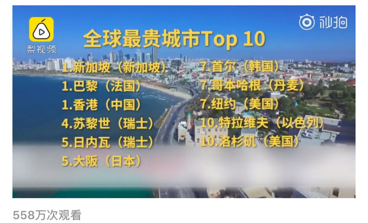 全球城市生活成本最貴的竟然沒(méi)有深圳