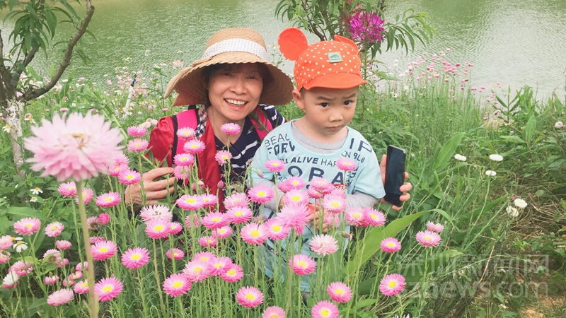 賞花遛娃兩不誤