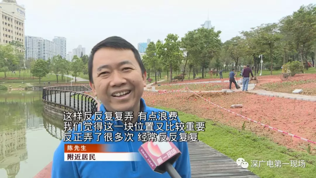 深廣電第一現(xiàn)場2019年3月25日訊 道路反復(fù)開挖是廣大市民對于城市建設(shè)過程中最不滿意的一種現(xiàn)象。除此之外,把公園里面的綠地來回折騰也很容易引起人們的質(zhì)疑,最近就有觀眾向《第一現(xiàn)場》反映。中心公園里的一塊草坪,反復(fù)折騰快半年了也沒弄出個(gè)模樣來這到底是要搞哪出?