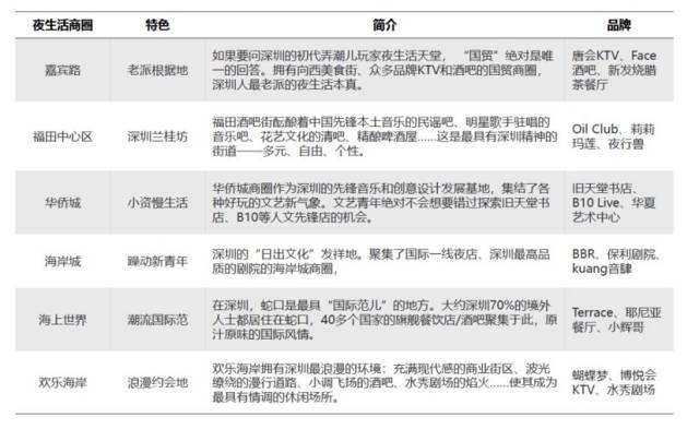 最后,報告總結出深圳六大夜生活聚集地,體現出深圳不同時代的生活類型與氣質。