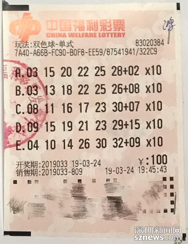 3月24日晚,中國福利彩票雙色球游戲進行第2019033期開獎。當期雙色球紅球號碼為09、15、19、21、23、29,藍球號碼為15。深圳彩民中出11注一等獎,中出的站點除了南山區(qū)粵海路飛馬城世界服裝貿(mào)易廣場c-130商鋪83020384投注站中出10注,還有1注是寶安區(qū)松崗街道平安路居樂苑10號83020476投注站中出。