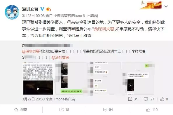 深圳交警接到舉報信息后實時關(guān)注事情動態(tài),盡快聯(lián)系舉報人員了解車內(nèi)詳情。