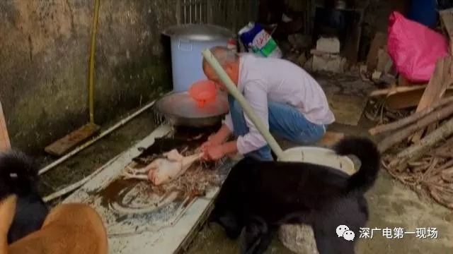 這名男子將活禽拿到了民房旁邊的一處宰殺點(diǎn),另外一名年長一點(diǎn)的男子接過活雞就地宰殺。
