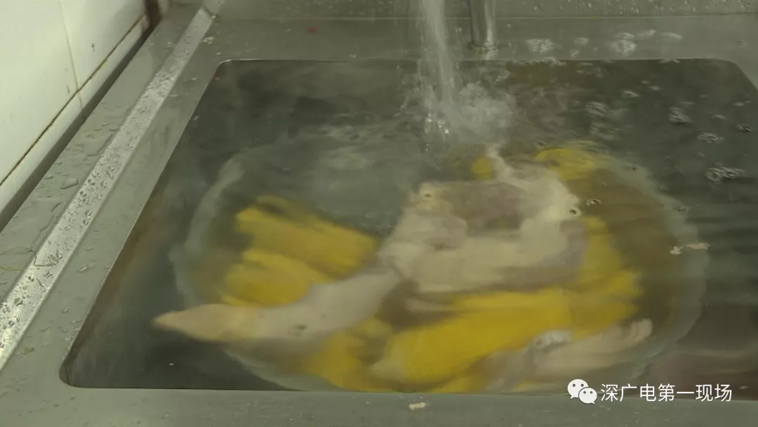 中午12點(diǎn),記者隨同市監(jiān)寶安局沙井所的執(zhí)法人員對(duì)這家蟹王子餐廳進(jìn)行突擊檢查。才剛進(jìn)后廚沒多久。執(zhí)法人員就發(fā)現(xiàn)。這做酸菜魚的酸菜。居然泡在了洗碗池!