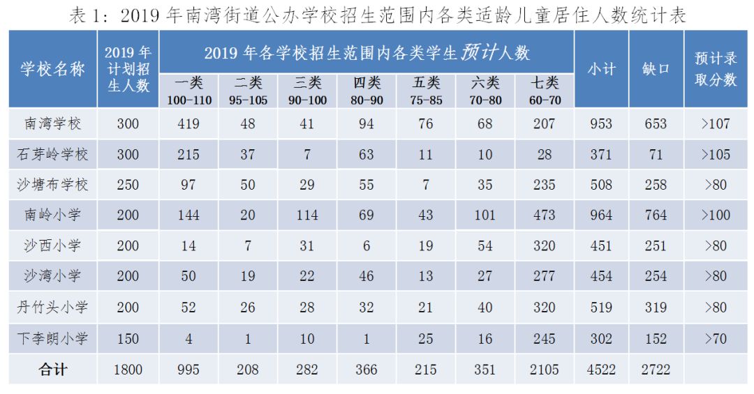 2019年南灣街道公辦學校招生范圍內各類適齡兒童居住人數統(tǒng)計表