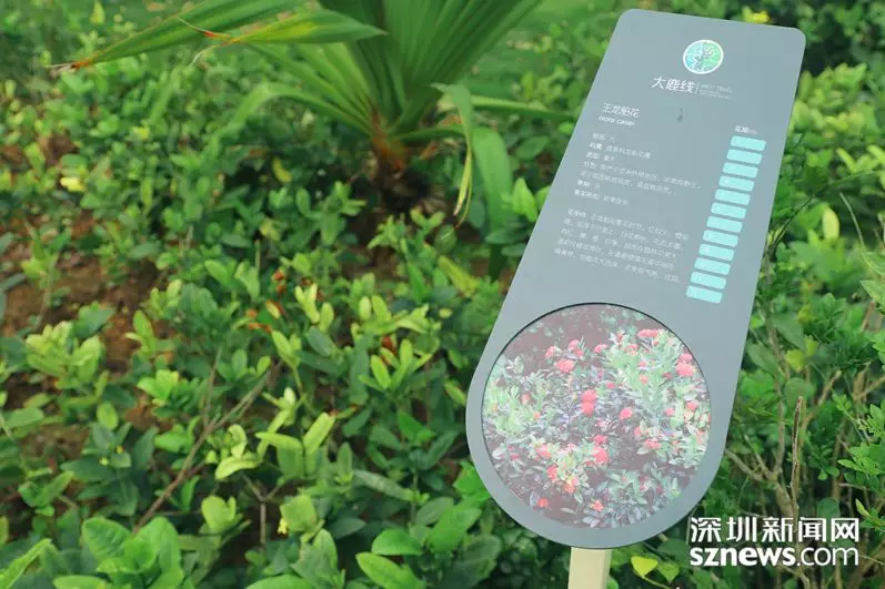 隨著綠道行進的深入,記者來到第一個自然觀察研習點,這里配置有自然研習導賞標識牌,牌上有植物動物的照片及介紹,牌子的角落有供游客學習的二維碼。記者了解到,新區(qū)同時開發(fā)建立一套APP自然課堂學習系統(tǒng),在綠道全程配套建設64個實地自然觀察研習點,設置了260余個自然研習導賞標識,接入專業(yè)智能識別軟件,配以體量龐大生物影像數(shù)據(jù)庫。掃碼進入APP就可以通過文字、圖片和音像資料了解到“大鹿線”全景介紹和分區(qū)介紹,以及物種相關知識。同時,該系統(tǒng)利用手機GPS定位技術,為行進中的市民游客自動講解所到之處的自然課堂語音課程。來自羅湖的資深驢友李先生告訴記者,來“大鹿線”徒步,不僅鍛煉身體愉悅心情,還可以學到豐富的自然知識,打開APP行走全程,猶如參觀了一座多維一體的山海“全景博物館”。