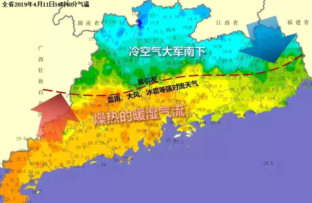 與華南沿海的暖濕氣流形成對峙