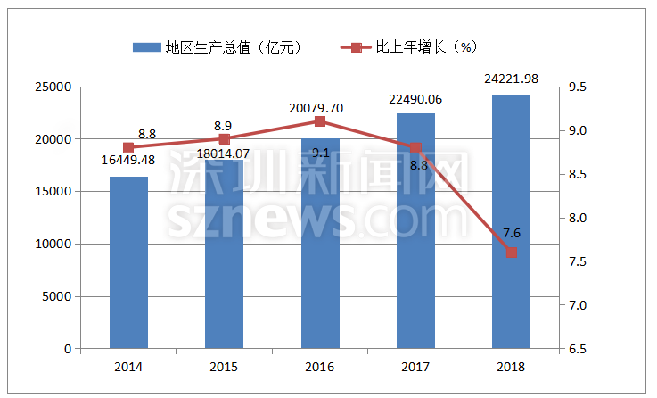 深圳新聞網(wǎng)2019年4月19日訊(記者 劉夢婷 通訊員 胡雪濤)4月19日,記者從深圳市統(tǒng)計局獲悉,深圳市2018國民經(jīng)濟與社會發(fā)展統(tǒng)計公報出爐:全市實現(xiàn)地區(qū)生產(chǎn)總值24221.98億元,比上年增長7.6%,常住人口達1302.66萬人。人均可支配收入57543.60元,居民人均消費支出40535.02元。總體來看,2018年深圳經(jīng)濟運行穩(wěn)健,主要經(jīng)濟指標表現(xiàn)良好,高質(zhì)量發(fā)展扎實推進。