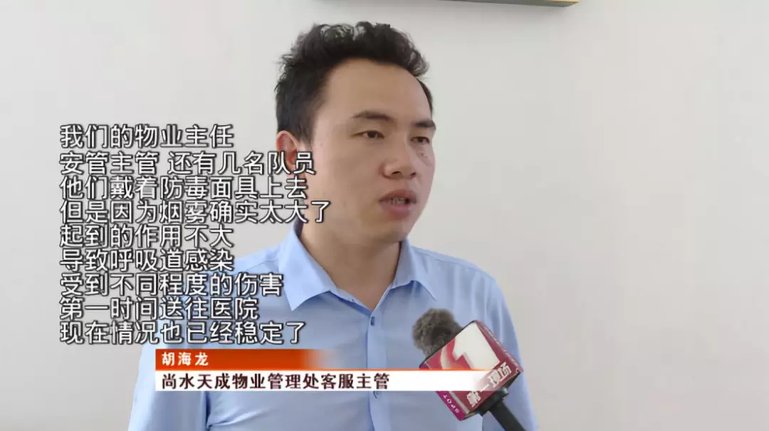由于火勢增大,家具被燒著后產(chǎn)生大量黑煙,物業(yè)工作人員通知該樓層及樓上的住戶全部撤離。