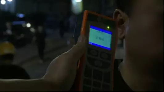 隨后,多名交警趕到了現(xiàn)場,對黑衣男子進(jìn)行酒精測試,測試結(jié)果顯示為零!