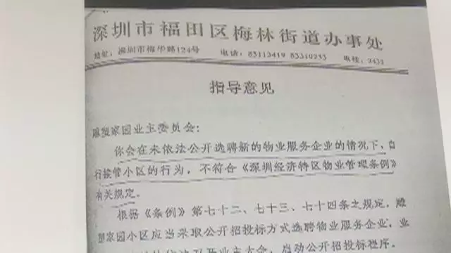 內(nèi)容顯示:業(yè)委會(huì)在未公開選聘新物業(yè)公司的情況下,自行接管小區(qū)的行為,不符合相關(guān)法規(guī)規(guī)定??芍煜壬f,這份文件的真實(shí)性有待核實(shí)。而發(fā)出這份文件的業(yè)主卻堅(jiān)稱,文件的照片是當(dāng)年在街道辦辦公室拍的,不可能有假。