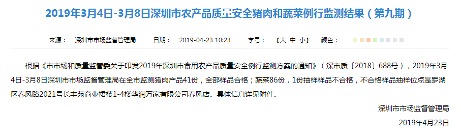 豬肉產(chǎn)品和蔬菜抽檢結果