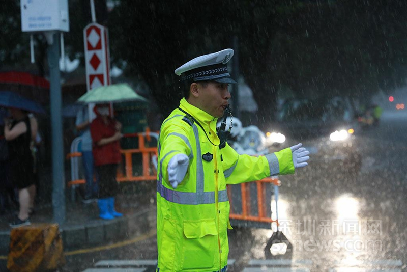 20時(shí),交警雨中執(zhí)勤(涂勝 攝)