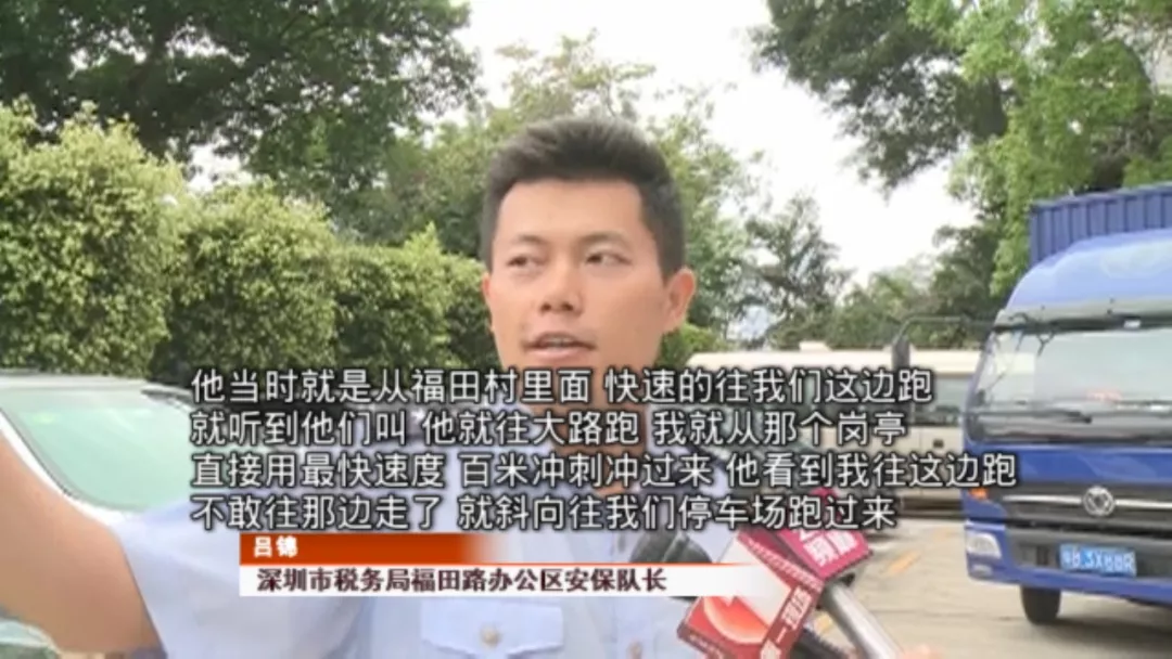 當(dāng)天早上,深圳市稅務(wù)局福田路辦公區(qū)的安保隊長呂錦像往常一樣,正在崗位上值著早班。突然聽到外面一陣騷亂,他趕忙起身查看情況。