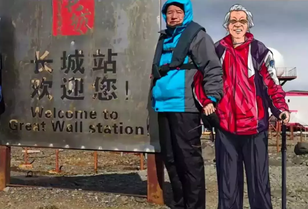 邱老帶著愛妻的照片登陸南極,