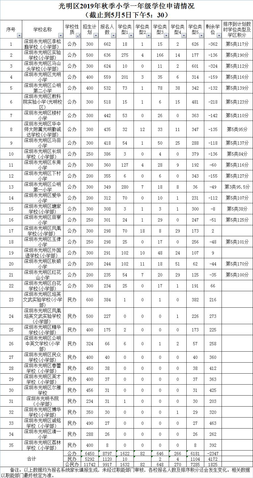 數(shù)據(jù)來源:寶安區(qū)教育局基礎(chǔ)教育科(截至2019年5月12日下午5點)