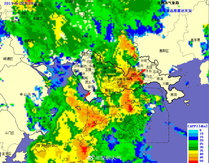 目前強(qiáng)降水中心已移至我市中部地區(qū),未來1-2小時(shí)內(nèi)東部地區(qū)將出現(xiàn)20-40毫米降水,深圳市氣象臺于2019年05月28日09時(shí)15分將暴雨黃色預(yù)警擴(kuò)展至全市,全市進(jìn)入暴雨戒備狀態(tài),請注意防范。