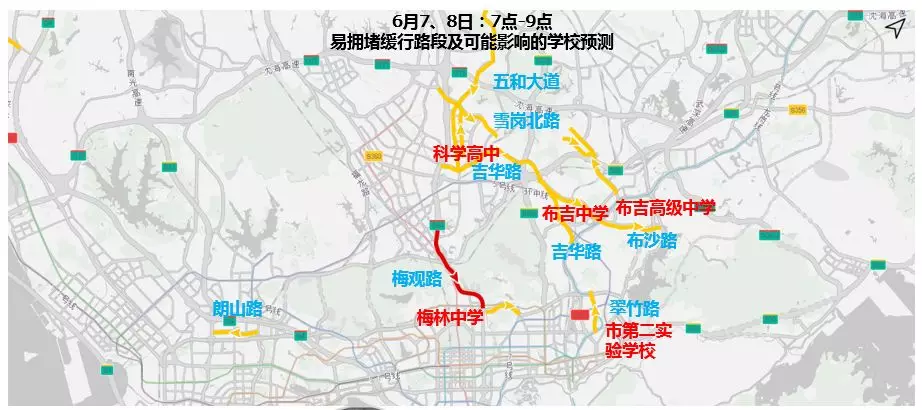 今年端午假期適逢高考,6月7日-8日8:30-12:00、14:30-17:30時(shí)段內(nèi)考場(chǎng)周邊路段車(chē)輛集中,尤其羅湖區(qū)、福田區(qū)交通壓力較大,梅觀路、沿河南路、布心路、福龍路、留仙大道及景田路等部分道路易出現(xiàn)擁堵,建議市民綠色出行,及時(shí)留意交通管制措施,合理規(guī)劃線路。此外,途徑考點(diǎn)周邊區(qū)域時(shí)請(qǐng)勿亂鳴喇叭,共同為考生營(yíng)造良好的考試環(huán)境。