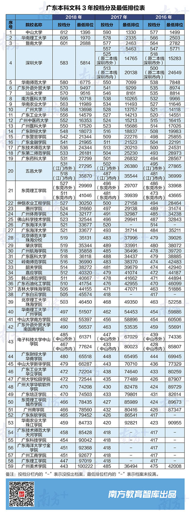 總體來(lái)看,廣東文科專業(yè)招生數(shù)量相對(duì)穩(wěn)定,且一些不適應(yīng)社會(huì)發(fā)展的文科專業(yè)正逐步調(diào)整,因此2018年文科一半以上的高校最低排位較2017年上升,文科生要考個(gè)好大學(xué),需要更努把力了。例如華南理工大學(xué)、華南師范大學(xué)、廣州大學(xué)3所高校最低排位比去年有所提升,分別提高365、324和59。