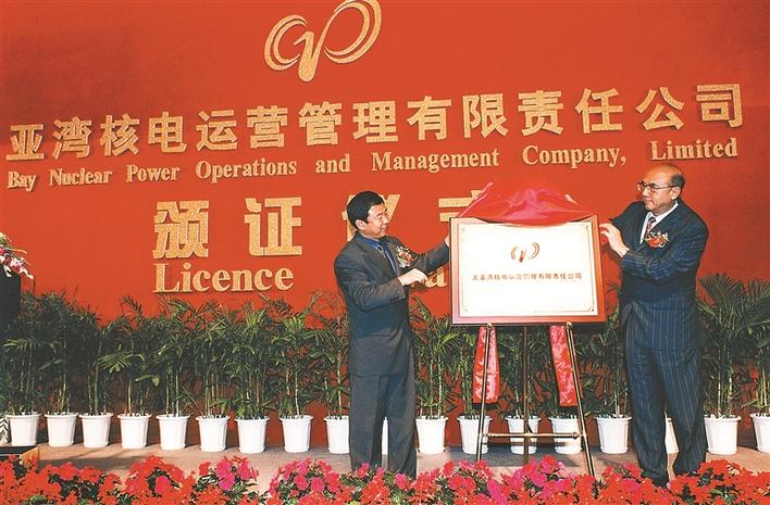 ▲2003年,中廣核核電運營有限公司成立,昝云龍(右)揭牌。
