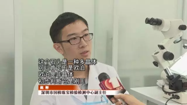 經(jīng)過(guò)檢測(cè),工作人員把檢測(cè)結(jié)果當(dāng)場(chǎng)向單先生做了解釋。這個(gè)白色圓石的硬度、密度等方面檢測(cè)顯示,懷疑它是人工合成的剛玉結(jié)合體,像紅藍(lán)寶石也是屬于剛玉。