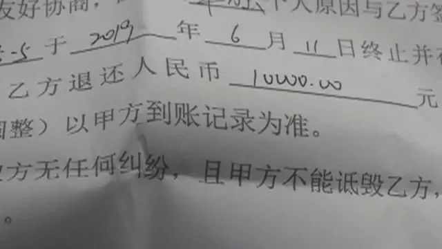 單先生出示了雙方簽的協(xié)議,雙方于6月11日解約,乙方拍賣(mài)公司退還甲方單先生1萬(wàn)元,“雙方無(wú)任何糾紛,甲方不得詆毀乙方”。公司另外補(bǔ)償?shù)?000元沒(méi)寫(xiě)在協(xié)議上,但已經(jīng)打到單先生妻子賬戶上。