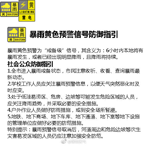 8:00暴雨黃色預(yù)警擴(kuò)展至全市
