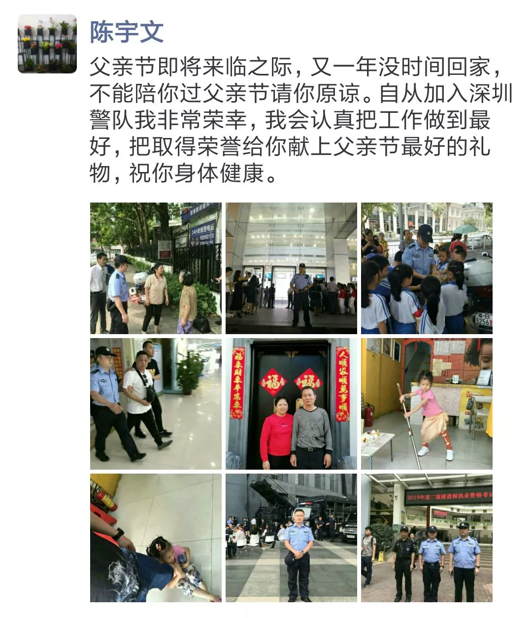▲蓮花派出所民警何振忠朋友圈