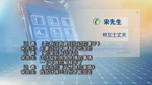 為了核實(shí)林女士的說(shuō)法,記者撥通了林女士丈夫宋先生的電話。宋先生沒有承認(rèn)家暴事實(shí),回應(yīng)的是相當(dāng)“委婉”。