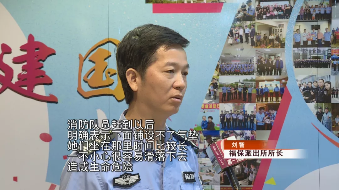 只見兩名女子蹲坐在離地面10多米的窗外平臺上,頻頻做出要向跳下的動作,而且她們不讓任何人靠近。奔赴現場的福保派出所所長劉智來到窗前,在表明身份后和窗外的兩名女子進行溝通,原來,這兩名女子系投資受損,精神上受到刺激,產生了輕生的念頭。