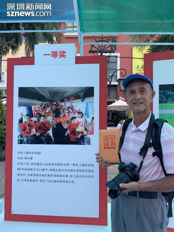 “我從報紙上看見深圳福彩舉辦的返鄉(xiāng)活動,覺得這個做公益獻愛心的活動讓我很感動。我想通過我的照片來彰顯深圳是一個大愛的城市,來讓大家看到深圳福彩的愛心宗旨?!?2歲的黃天肇憑借《福彩的祝福》作品榮獲本次大賽一等獎。作為資深的攝影愛好者,他從深圳福彩舉辦“愛心福彩資助來深建設(shè)者春節(jié)返鄉(xiāng)”活動開始,用相機記錄了十余年,“那個時候我都是用的傻瓜相機拍,獲獎的作品就是我用傻瓜相機拍的,直到這兩年才開始用數(shù)碼相機?!睂τ诖舜握褂[,黃天肇認為深圳福彩組織選出的98張照片,承載著深圳對孤寡老人、弱勢群體、特困戶的關(guān)心,彰顯了深圳人的大愛,也激發(fā)市民通過購彩的方式奉獻愛心,他表示會一直用照片銘記這些珍貴的記憶。
