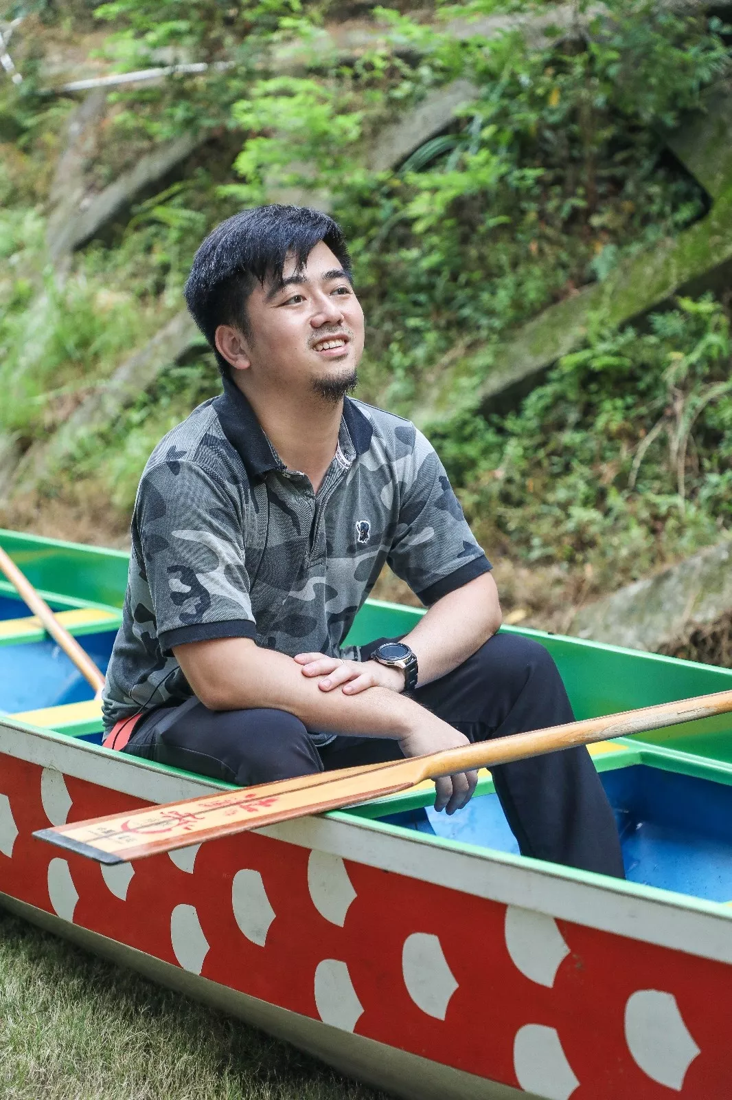 多年來,記憶中的龍舟漸漸褪色,又在2016年突然變得鮮活起來。那一年,松崗街道時隔多年再次舉辦龍舟賽,洪橋頭社區(qū)尤為重視,組建起龍舟隊后,他就加入其中,成為龍舟隊的劃手,而父親依然是龍舟隊的舵手。