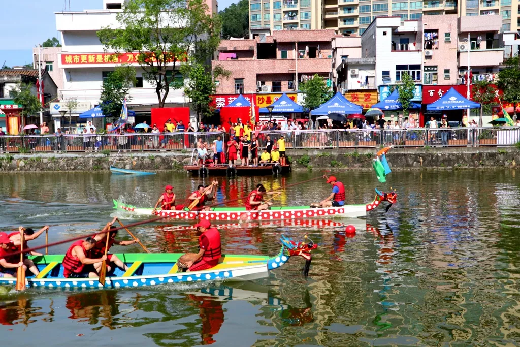 -松崗因水資源充沛,河道寬闊,故自古就有端午節(jié)賽龍舟的習(xí)俗,到了清代光緒年間,由當(dāng)?shù)匚氖霞易鍖⑦@一活動發(fā)展得更為豐富。