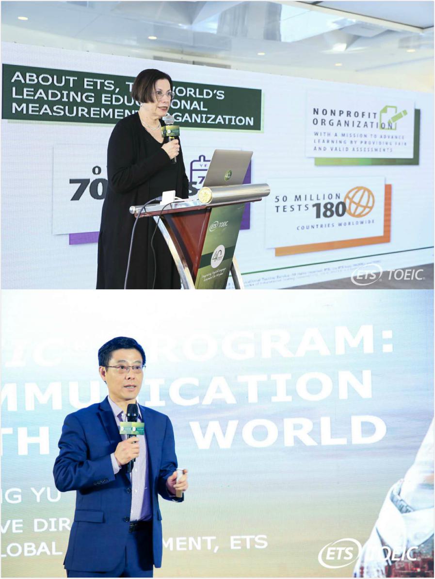 美國(guó)ETS國(guó)際部總經(jīng)理Shelly Punchatz、托業(yè)產(chǎn)品管理總監(jiān)余峰博士,代表ETS分別出席了上海站、深圳站慶典活動(dòng)。在慶典活動(dòng)中,兩位ETS總部高層回顧了TOEIC40年的卓越發(fā)展成就,以及助力全球多個(gè)國(guó)家及地區(qū)企業(yè)實(shí)現(xiàn)國(guó)際化發(fā)展的成功案例。他們表示,語(yǔ)言是架起經(jīng)濟(jì)和文化的橋梁,托業(yè)已成為全球應(yīng)用最廣泛、最具有含金量的商務(wù)和職業(yè)英語(yǔ)測(cè)評(píng)標(biāo)準(zhǔn)。在國(guó)際化的商務(wù)溝通中,TOEIC越來(lái)越成為企業(yè)不可或缺的合作伙伴。