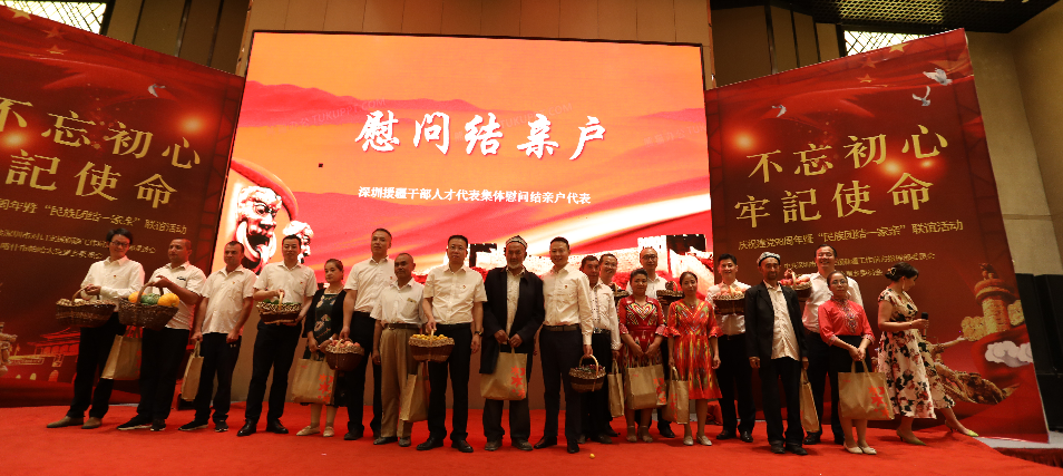“歷史告訴我們,沒有共產(chǎn)黨,就沒有新中國;沒有共產(chǎn)黨,也沒有我們新疆各族人民今天的幸福生活,在這個特殊的日子里,讓我們繼續(xù)攜起手來,不忘初心,牢記使命,緊密團(tuán)結(jié)在以習(xí)近平同志為核心的黨中央周圍,聽黨話,跟黨走,挑起重?fù)?dān),勇當(dāng)尖兵,共同為實(shí)現(xiàn)新疆社會穩(wěn)定和長治久安總目標(biāo),為受援地打贏脫貧攻堅(jiān)戰(zhàn)而努力奮斗!”深圳援疆前方指揮部總指揮楊春生在致辭中說到。