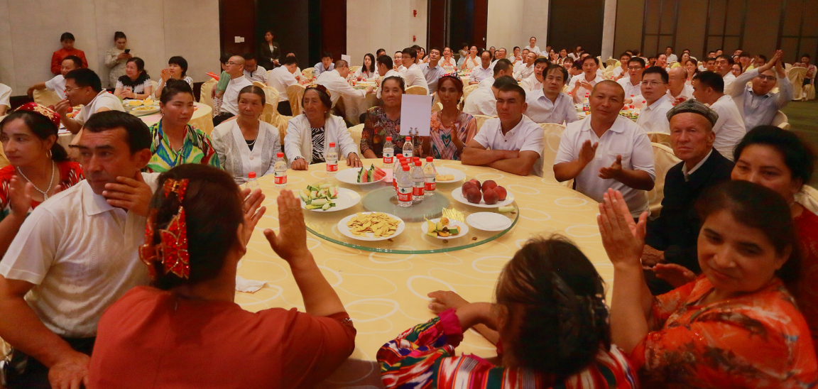深圳援疆前方指揮部副總指揮袁富勇同志、黨委委員黃東、王漢偉同志和各處(室)、組、隊(duì)負(fù)責(zé)同志(代表)與帕鄉(xiāng)結(jié)親戶代表一同上臺,互贈禮物。