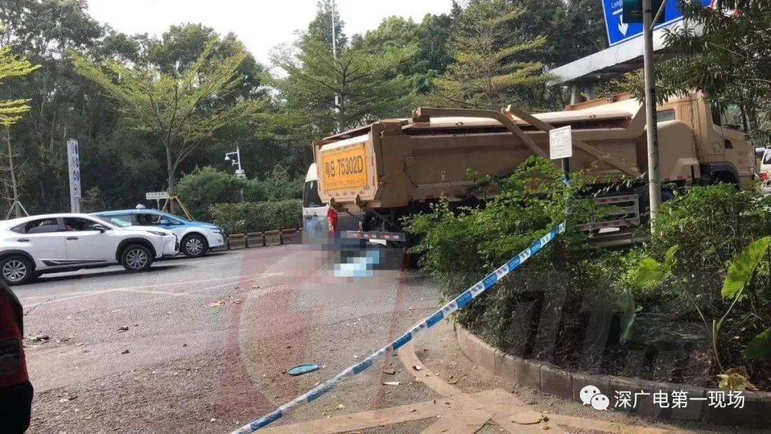 一輛滿載泥土的泥頭車(chē)與兩輪電動(dòng)車(chē)相撞