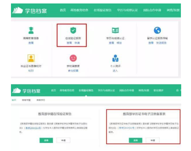 登錄之后,點(diǎn)擊“申請?jiān)诰€驗(yàn)證報(bào)告”,選擇查看《教育部學(xué)歷證書電子注冊備案表》。