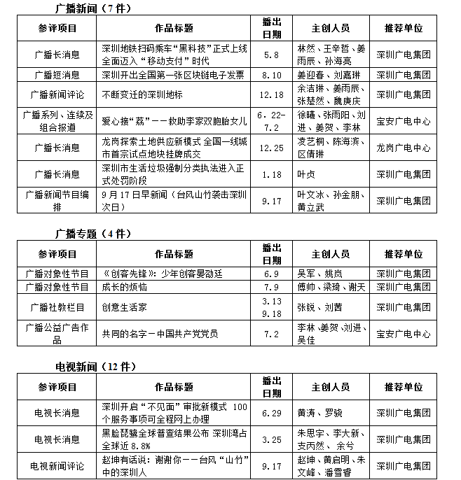 第26屆(2018年度)深圳新聞獎獲獎作品目錄