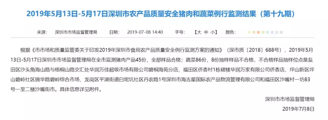 “2019食用農(nóng)產(chǎn)品抽檢第十九期”