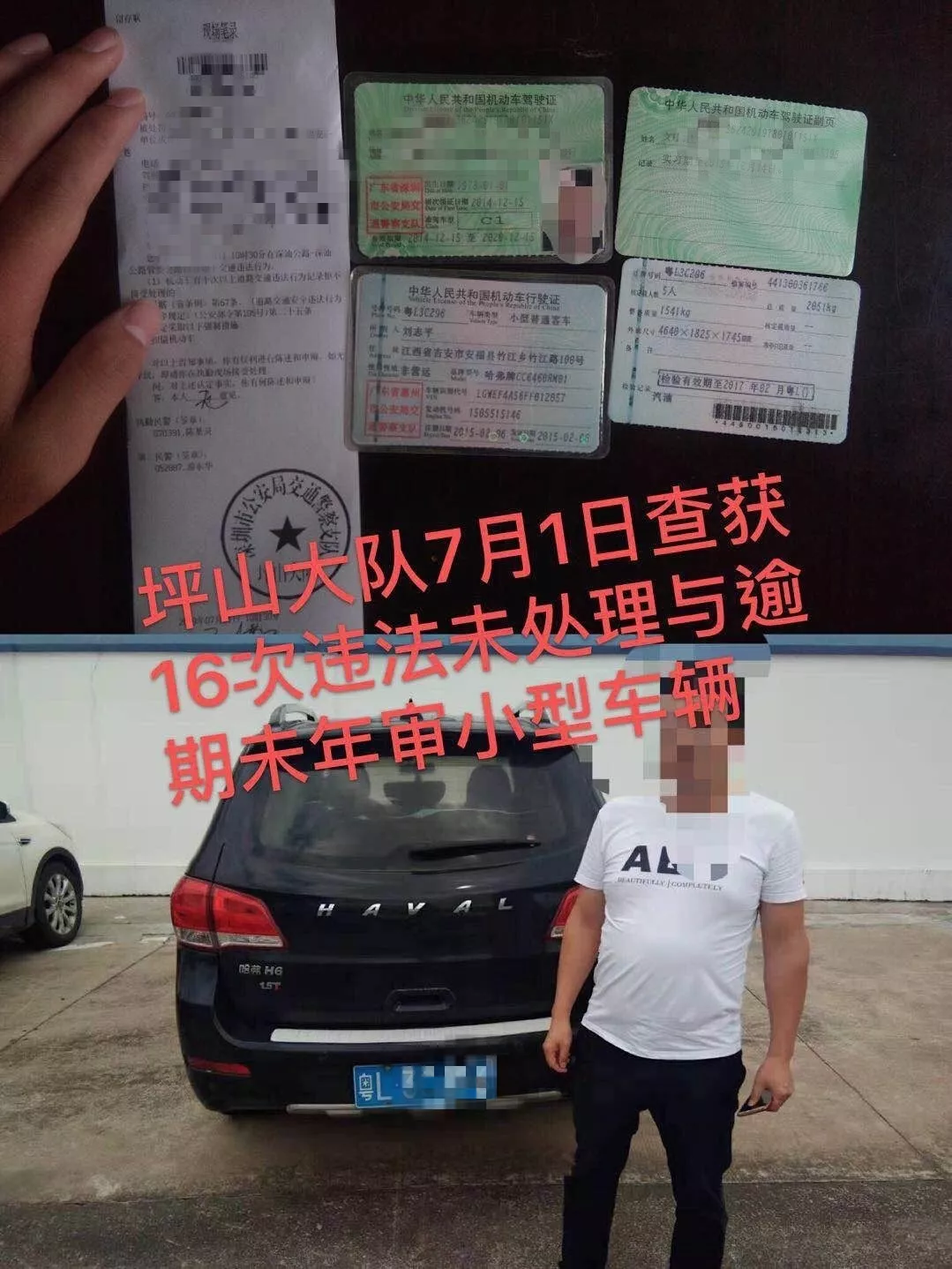 7月1日,深圳交警在坪山大道區(qū)委區(qū)政府路段查獲一16次違法未處理、逾期未年審小型車輛,目前民警已依法將該車扣留,并對其違法行為進(jìn)行了處罰,及時消除了道路交通安全隱患。