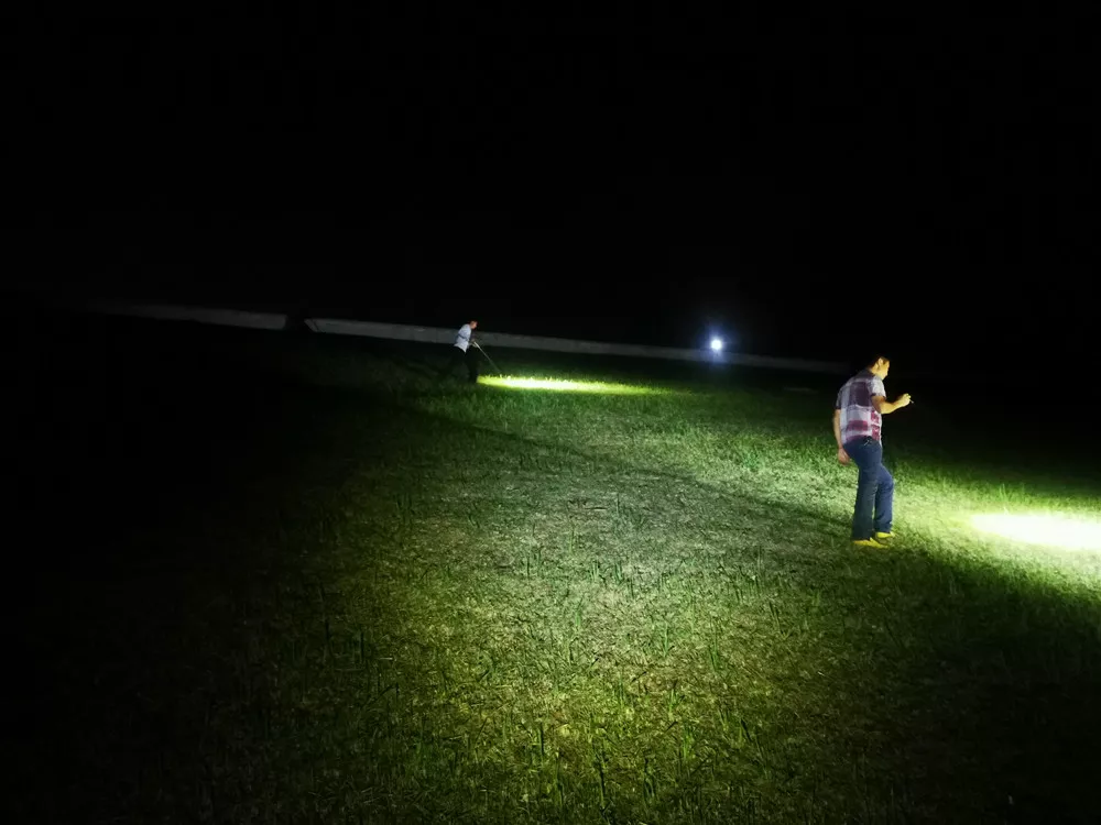 他們拿著手電筒對(duì)水庫進(jìn)行巡查