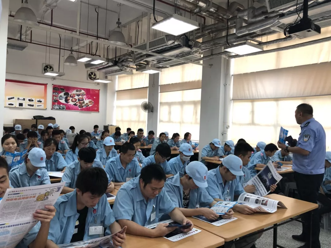 同時,反詐騙教育學(xué)院公開課走進(jìn)梅林派出所轄區(qū)成豐電子廠,由反詐騙教育學(xué)院專職講師為廠里近500位員工普及反詐知識,并且組織工友們閱讀反詐騙教育學(xué)院??岣咚麄兊姆丛p騙意識。