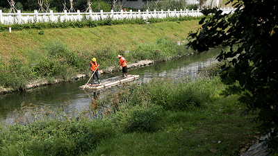 每天一早,機(jī)場內(nèi)排洪渠現(xiàn)場主管夏松