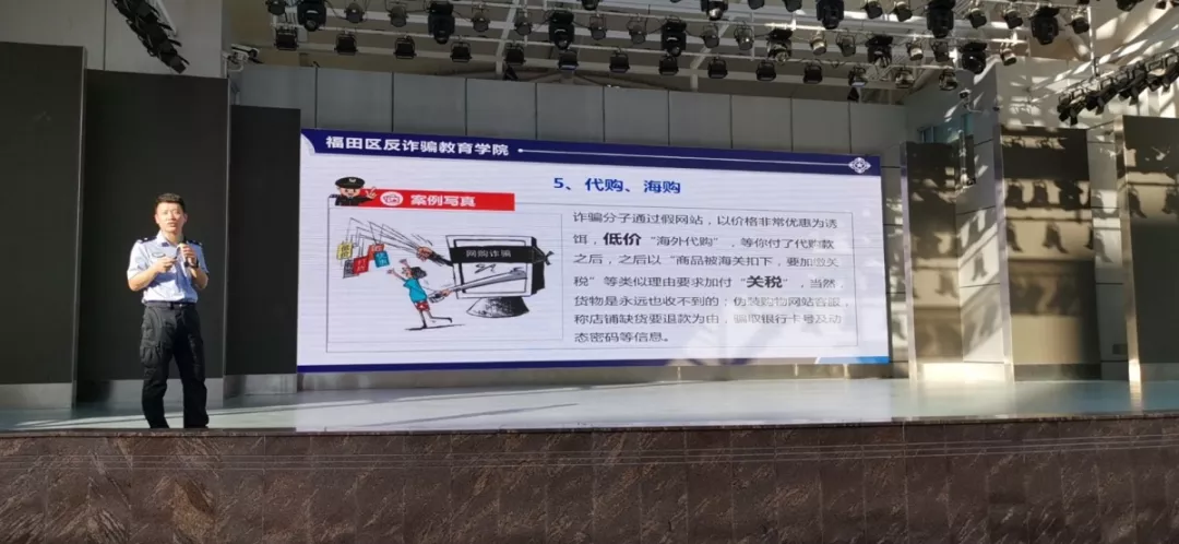 活動當(dāng)天,福田區(qū)反詐騙教育學(xué)院第33場公開課于香蜜湖派出所轄區(qū)東海繽紛天地英皇電影院舉行,東海小區(qū)物業(yè)管理人員及東海繽紛城工作人員參加活動。