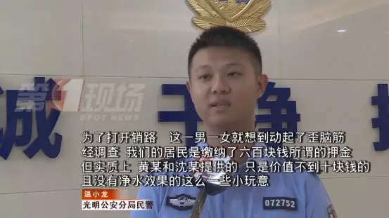 近日有租戶向光明警方報案,說是自稱“水質管理局”的人,上門強制安裝凈水器,還收了600塊錢,但并沒有按照約定提供后續(xù)服務,懷疑遇到了騙子。